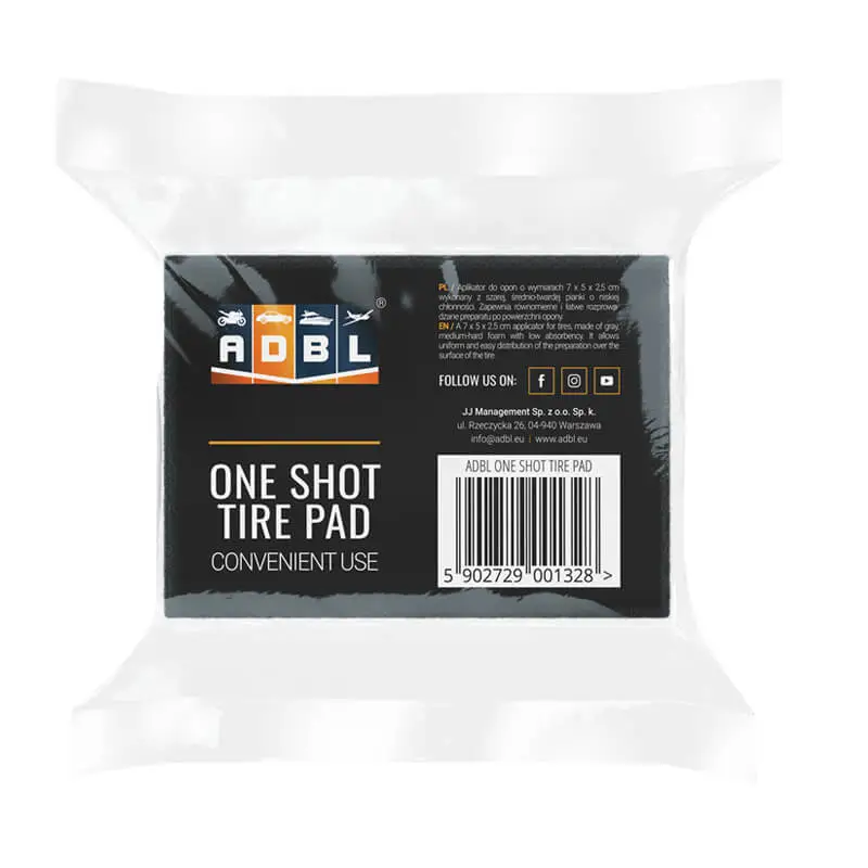 Aplikator do opon o wymiarach 7 x 5 x 2,5 cm wykonany z szarej, średnio-twardej pianki o niskiej chłonności. Zapewnia równomierne i łatwe rozprowadzane preparatu po powierzchni opony.
