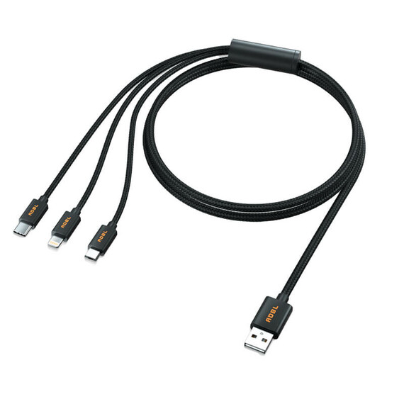 Splitter to przejściówka do ładowania telefonu i innych urządzeń elektronicznych. Wyposażona jest w końcówki USB-C, mikro USB i końówkę w standardzie Apple Iphone. Wzmocniony kabel zapobiega przerywaniu i przecieraniu.