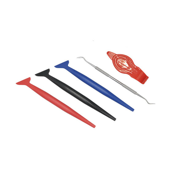 - Metalowy patyczek: przeznaczony do odchylania uszczelek bez ryzyka ich uszkodzenia, co ułatwia aplikację folii w tych miejscach.