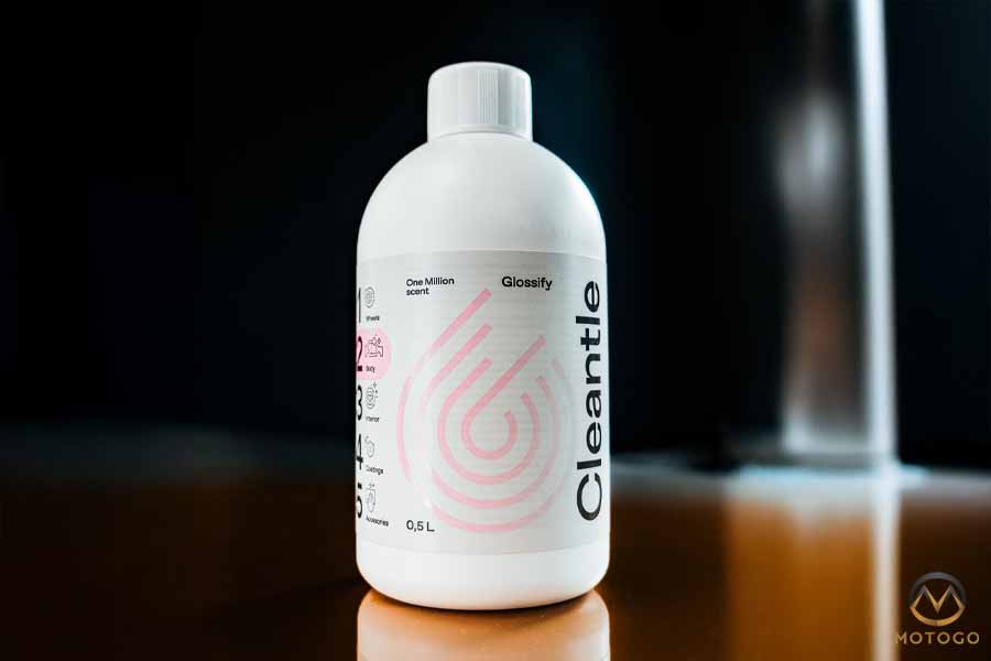 Cleantle Glossify - sealant którego składniki sprawiają, że lakier po aplikacji zyskuje eleganckie przyciemnienie oraz niesamowity połysk. Głębia i szklistość mogą być niemalże porównane do tych oferowanych przez pełnoprawne powłoki ceramiczne. Dużą zaletą produktu jest fakt, iż delikatne zarysowania stają się mniej widoczne, a lakier zyskuje zaskakującą śliskość. Aplikując produkt tworzymy na powierzchni lakieru naszego samochodu warstwę hydrofobową w znaczący sposób zmniejszającą ilość osadzających się zabrudzeń. Środek jest bardzo prosty w aplikacji, pozostawiając w tym względzie wybór - aplikacja możliwa jest zarówno na suchy jak i mokry lakier. Warto także wspomnieć o uniwersalności jaką oferuje Glossify, jego aplikacja możliwa jest także na felgach oraz powierzchniach plastikowych karoserii. Produkt może funkcjonować jako jedyne zabezpieczenie lakieru bądź wspomagać wcześniej zaaplikowane.