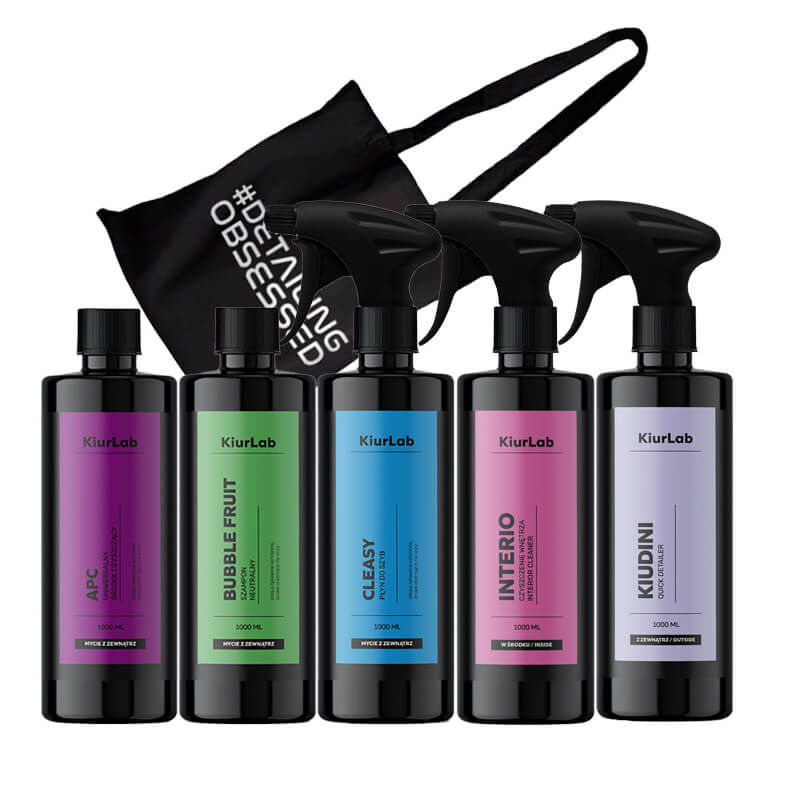 Zestaw umożliwia utrzymanie auta w czystości na co dzień, obejmując: bezpieczne mycie zewnętrzne (szampon pH neutralne), efektywną pielęgnację wnętrza (Interior Cleaner i uniwersalny APC), perfekcyjną przejrzystość szyb (płyn Cleasy) oraz szybkie odświeżenie i zabezpieczenie lakieru (Kiudini). Produkty KiurLab charakteryzują się zaawansowanymi recepturami, które gwarantują skuteczne działanie minimalizując maksymalnie ryzyko uszkodzenia powierzchni, co jest priorytetem w pracy z samochodem.