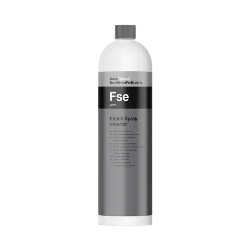 Koch Chemie Finish Spray exterior (FSE) to uniwersalny produkt do ekspresowej konserwacji takich powierzchni jak lakier, szkło i tworzywa sztuczne. Innowacyjna formuła produktu sprawia, że usuwa on osady z kamienia bez żadnych pozostałości. Jest to produkt 3w1 (czyści, pielęgnuje i konserwuje). Czyszczonym powierzchnią nadaje praktycznie nieskończonej głębi, oszałamiającego połysku i gładkości. To wszystko bez żadnych smug co dobrze świadczy o komforcie pracy z produktem. Produkt praktycznie natychmiast się wchłania, jest prosty w zastosowaniu i jest zabezpieczeniem dla czyszczonych powierzchni przed ich ponownym zanieczyszczeniem.