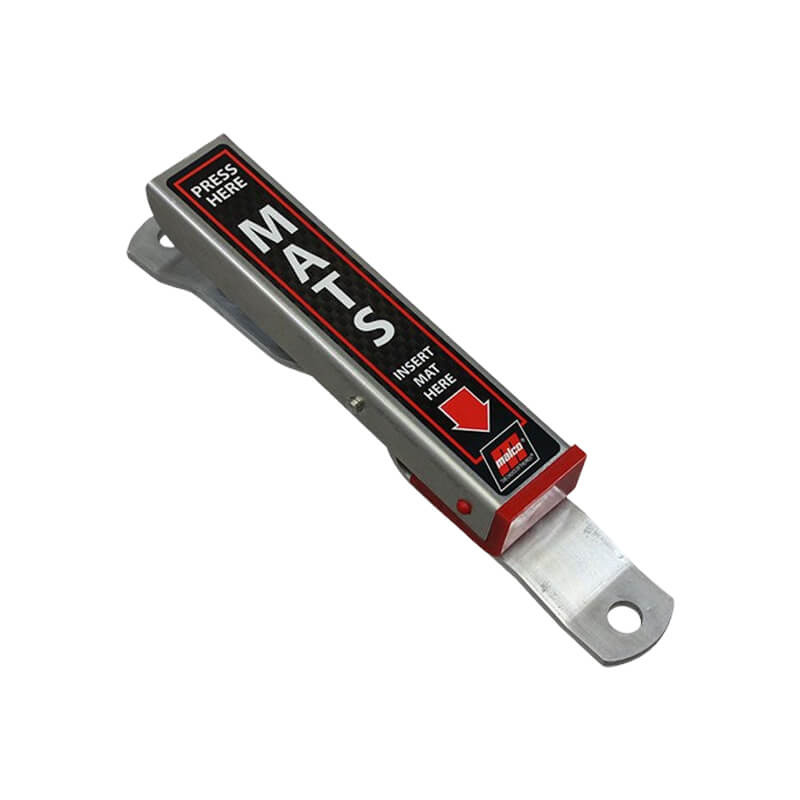 - Wydajny mechanizm: wyposażony w silny zacisk sprężynowy, przystosowany do utrzymania ciężkich mat gumowych i tekstylnych.