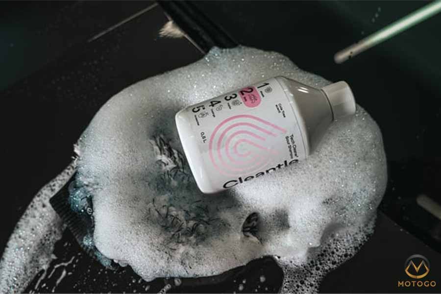 Rozpoczynamy mycie od górnych partii pojazdu, stopniowo schodząc coraz niżej. Do tego procesu dobrze sprawdzą się szampon Cleantle Tech Cleaner2 oraz rękawica MR RAG Pure Wash Mitt 23x20cm, która jest delikatna dla lakieru i skutecznie usuwa zabrudzenia.