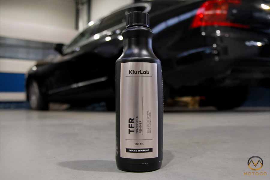 Na początku nanosimy TFR lub pianę aktywną za pomocą opryskiwacza lub pianownicy na powierzchnię karoserii, odczekujemy chwilę, aby zareagowała z zabrudzeniami, i spłukujemy. W zimie zamiast pian aktywnych o neutralnym pH warto wybierać preparaty typu pre-wash, które skuteczniej usuwają zabrudzenia – tu dobrze sprawdzi się np. Kiurlab Traffic Film Remover TFR.