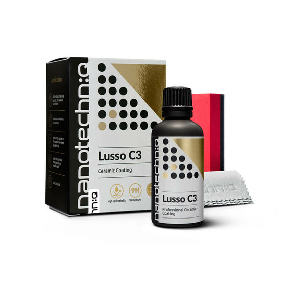 Powłoka osiąga twardość 9H w skali ołówkowej. Zastosowanie Lusso C3 poprawia gładkość powierzchni, intensyfikuje barwę lakieru i nadaje mu wysoki połysk. Dodatkowo, powłoka maskuje drobne defekty, takie jak hologramy i swirle.