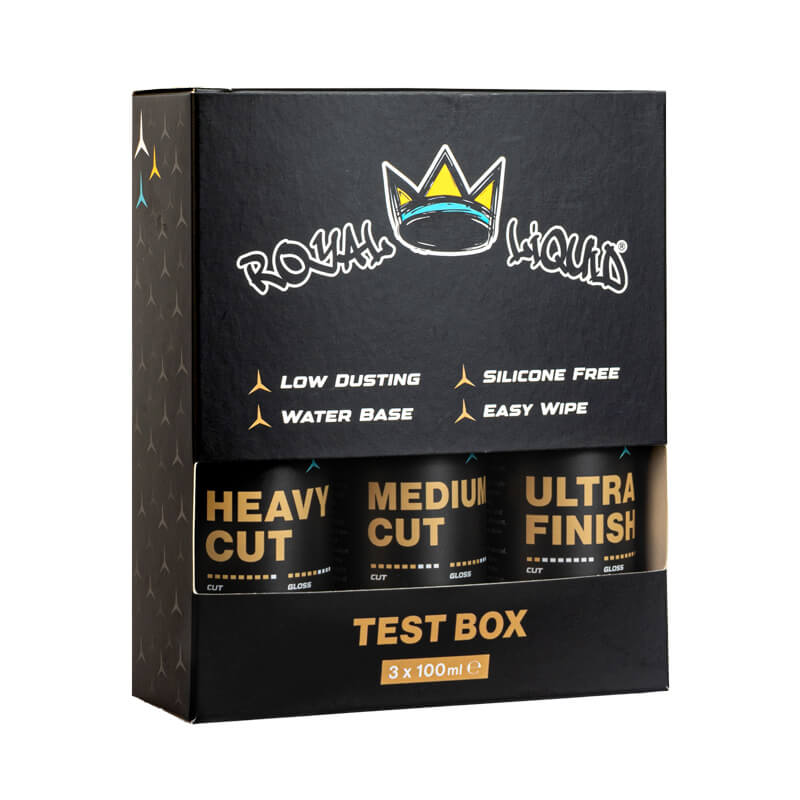 Royal Liquid Compound Test Box to kompleksowy system polerski w kompaktowym wydaniu, przeznaczony do pełnej renowacji powierzchni lakierniczych. Zestaw składa się z trzech uzupełniających się past, które pozwalają na przeprowadzenie procesu od agresywnego wycinania rys, przez etap polerowania pośredniego, aż po finalne wykończenie. Każdy z produktów oparty jest na bazie wodnej, co gwarantuje niskie pylenie oraz łatwość czyszczenia akcesoriów. Formuły pozbawione są wypełniaczy i silikonów, dzięki czemu efekty pracy są trwałe i łatwe do zweryfikowania podczas inspekcji. Pojemność 100 ml na buteleczkę jest wystarczająca do wykonania pełnej korekty samochodu lub przeprowadzenia licznych testów wydajnościowych.