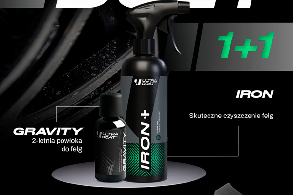 Jako wsparcie procesu przygotowania powierzchni, w zestawie znajduje się Ultracoat Iron+ 500 ml, który otrzymujesz w prezencie jako gratis do powłoki. Jest to neutralny deironizer o żelowej strukturze, przeznaczony do usuwania pyłu hamulcowego i lotnej rdzy. Jego bezpieczna formuła pozwala na głęboką penetrację osadów metalicznych, co jest niezbędnym krokiem przed aplikacją trwałej ochrony Gravity.