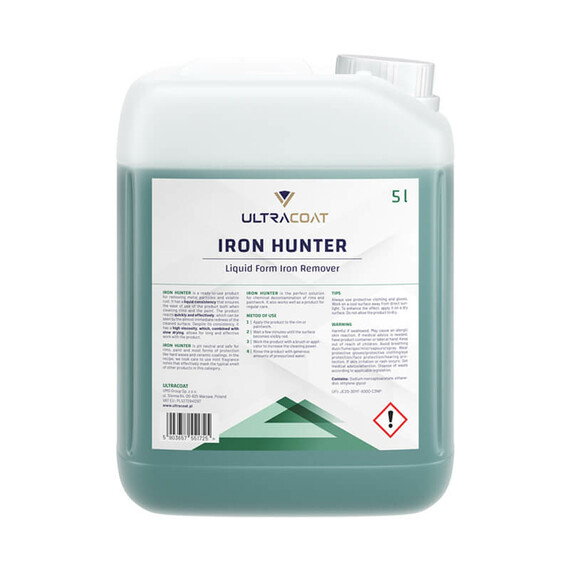Iron Hunter to środek usuwający cząsteczki metaliczne i lotną rdzę. Produkt dzięki płynnej konsystencji jest przyjemny podczas pracy na lakierze i felgach. Po aplikacji na powierzchnie, od razu zaczyna rozpuszczać zgromadzone zabrudzenia zabarwiając się na charakterystyczny fioletowo/czerwony kolor. Mimo płynnej konsystencji Iron Hunter cechuje się świetną lepkością, wolno zasychając podnosząc komfort pracy.